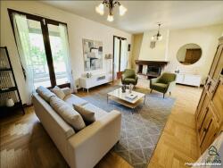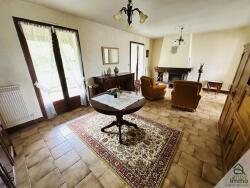 Le séjour avec cheminée, les larges ouvertures sur le jardin, ainsi que la cuisine indépendante apportent un charme authentique à ce bien.