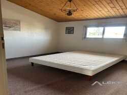 Au rez-de-chaussée, une entrée avec vestiaire mène à un vaste salon-séjour avec cheminée, une cuisine indépendante ouverte sur une terrasse équipée d'un store banne, deux chambres, une salle de bains( baignoire, douche, double vasque ), des toilettes séparés et un débarras.