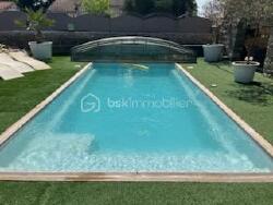 Le tout est édifié sur une belle parcelle entièrement clôturée, agrémentée d'une grande piscine et de plusieurs espaces cosy pour se détendre.