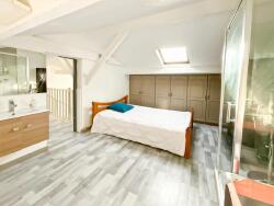 À l'étage supérieur, la mezzanine donne accès à deux chambres, dont une suite parentale avec salle d'eau intégrée, promettant confort et intimité. Le rez-de-chaussée, accessible par un escalier intérieur ou une entrée indépendante, abrite deux chambres très spacieuses idéales pour les enfants ou les invités, ainsi qu'une buanderie et une salle de bains familiale équipée d'une douche et d'une baignoire.