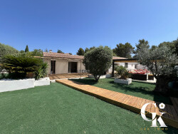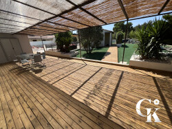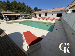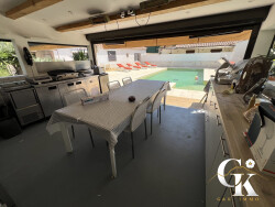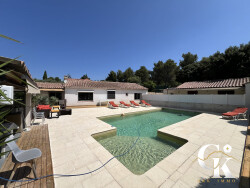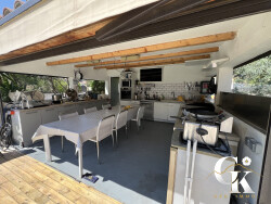 G&K immo vous propose à La Cadière-d'Azur (83740) : maison 7 pièces à vendre avec piscine et jardin. Orientée au sud-est, 198m2 de plein pied et 3000 m² de terrain. Son intérieur comporte une pièce à vivre, quatre chambres et une cuisine aménagée équipée. Il compte également une salle de bains, deux salles d'eau et trois toilettes. 1 piscine de 11x5m et un pool house de 25m2. 10 places de parking et 110 terrasses complètent le tout. elle inclue un T2 de 53 m2 composé d'un séjour, une salle d'eau et un wc. Cette dépendance possède son extérieur et sa propre piscine également de 2,4x4m.
