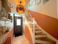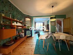 Dès l'entrée, la maison révèle immédiatement son élégance avec une belle hauteur sous plafond, des rosaces conservées, un parquet massif ancien et une atmosphère chaleureuse portée par des choix décoratifs particulièrement soignés. La salle à manger, raffinée et conviviale, s'ouvre naturellement sur le salon, baigné de lumière grâce à de belles ouvertures. Les volumes sont agréables, la circulation fluide, et l'ensemble dégage une vraie sensation de bien-être.