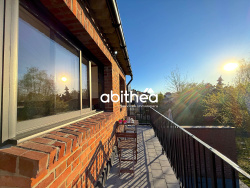 La cuisine ouverte, spacieuse (20 m2) et fonctionnelle, profite d'une vue dégagée sur le jardin et prolonge naturellement les espaces de vie. Le tout avec un couché de soleil exceptionnel directement dans la pièce. Rien de tel pour des fins de journées sur le balcon et dans le jardin. Le rez-de-chaussée dispose également d'une salle de bain ainsi que d'un WC indépendant.