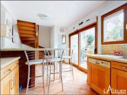 Au deuxième niveau, la vaste pièce de vie lumineuse, exposée est-ouest, s'ouvre sur une terrasse avec barbecue et un jardin ensoleillé à l'abris des regards, parfaits pour des moments de détente en extérieur. La cuisine ouverte apporte une touche de convivialité à cet espace de vie.