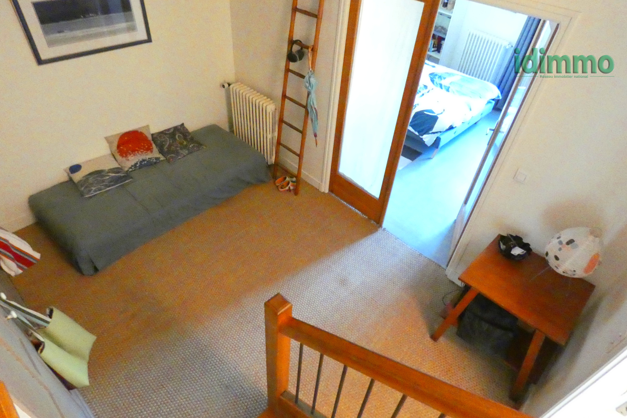 ÉTAGE : 2 chambres avec parquet au sol, 2 chambres avec carrelage au sol et placards (dont l'une avec balcon), salle d'eau (douche cabine et double vasque) avec rangements, WC indépendant et pièce avec point d'eau, accès balcon
