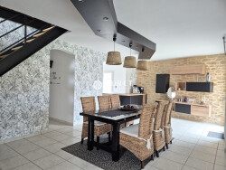 Dès l'entrée, vous serez séduit par une vaste pièce de vie lumineuse d'environ 56 m² agrémentée d'un poêle à bois, ouverte sur une cuisine de plus de 15 m² entièrement aménagée et équipée avec électroménager intégré, alliant fonctionnalité et modernité. Le rez-de-chaussée propose également une suite parentale de plus de 20 m² avec dressing et salle d'eau privative, un WC indépendant ainsi qu'une buanderie donnant accès à un double garage. Au-dessus du garage, un grenier facilement accessible offre de nombreuses possibilités d'aménagement selon vos besoins.