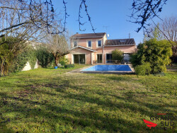 Elle se compose de 5 chambres dont une en rez de chaussée, un vaste et lumineux séjour ouvert sur un superbe jardin arboré sans vis à vis avec piscine, 5 chambres, une salle de bains, une salle d'eau, deux WC indépendants, une buanderie, un débarras, une cave, un garage et un abri de jardin aménageable.