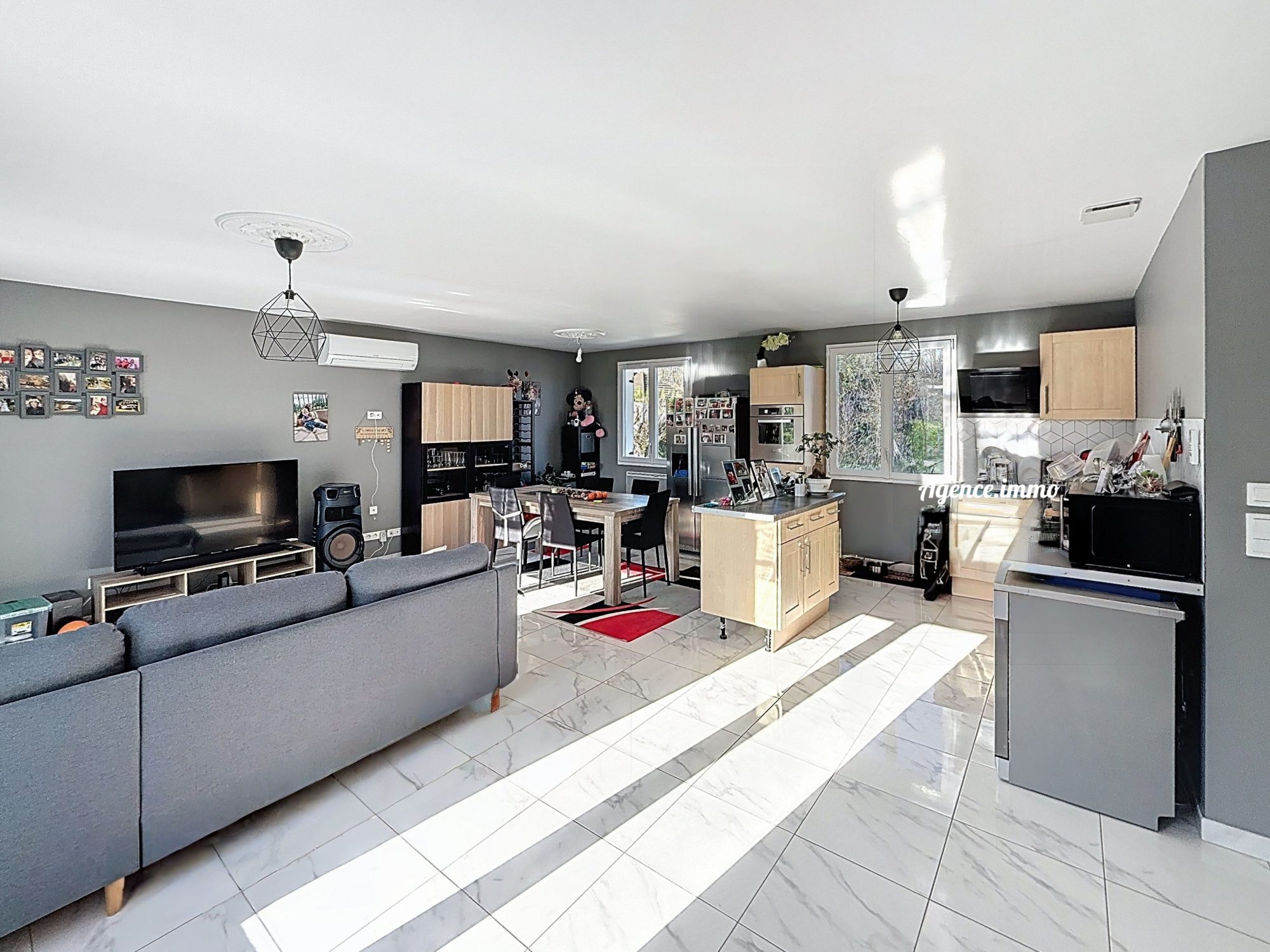 Au rez-de-chaussée, laissez-vous séduire par une spacieuse pièce de vie baignée de lumière, ouverte sur une cuisine aménagée et équipée, idéale pour partager des moments chaleureux.
