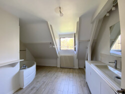À l'étage, le palier dessert trois belles chambres, une spacieuse salle de bain et des toilettes séparées. Les combles, aujourd'hui utilisés en espace de rangement, laissent envisager un potentiel d'aménagement supplémentaire.