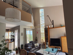 Le séjour de 40 m² (avec cheminé), baigné de lumière naturelle grâce à ses nombreuses ouvertures est le coeur battant de la maison. Il s'ouvre sur une terrasse ensoleillée, idéale pour des moments de détente en famille ou entre amis. La cuisine aménagée et équipée attenante, véritable espace de convivialité, invite à la gourmandise et à la créativité culinaire.