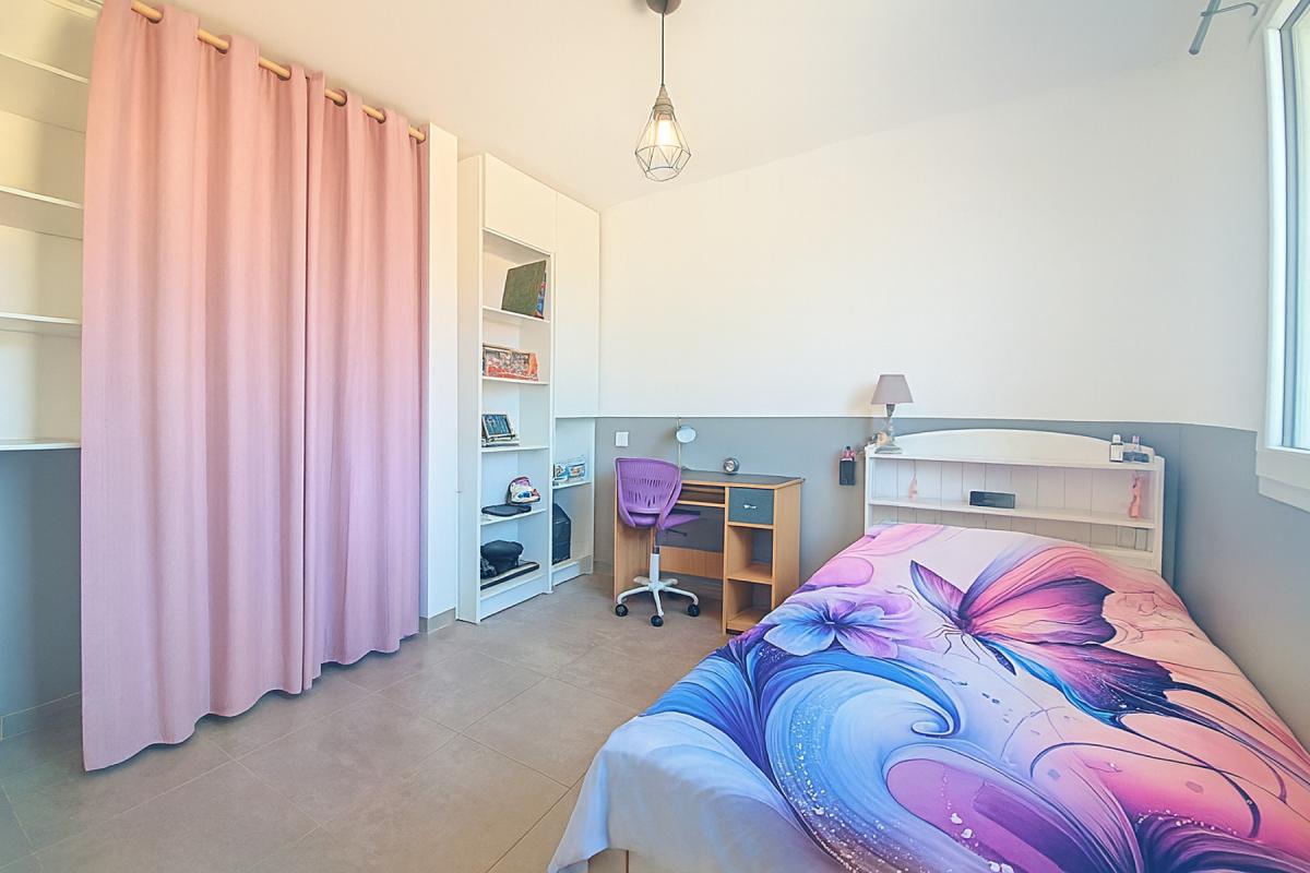 La maison offre des espaces de vie pratiques et agréables, avec un séjour lumineux et climatisé, 4 chambres spacieuses permettant à chacun d'avoir son intimité, et un poêle à bois qui ajoute une touche chaleureuse pour les soirées en famille. Les volets roulants électriques centralisés facilitent le quotidien, et le garage assure un stationnement sécurisé.
