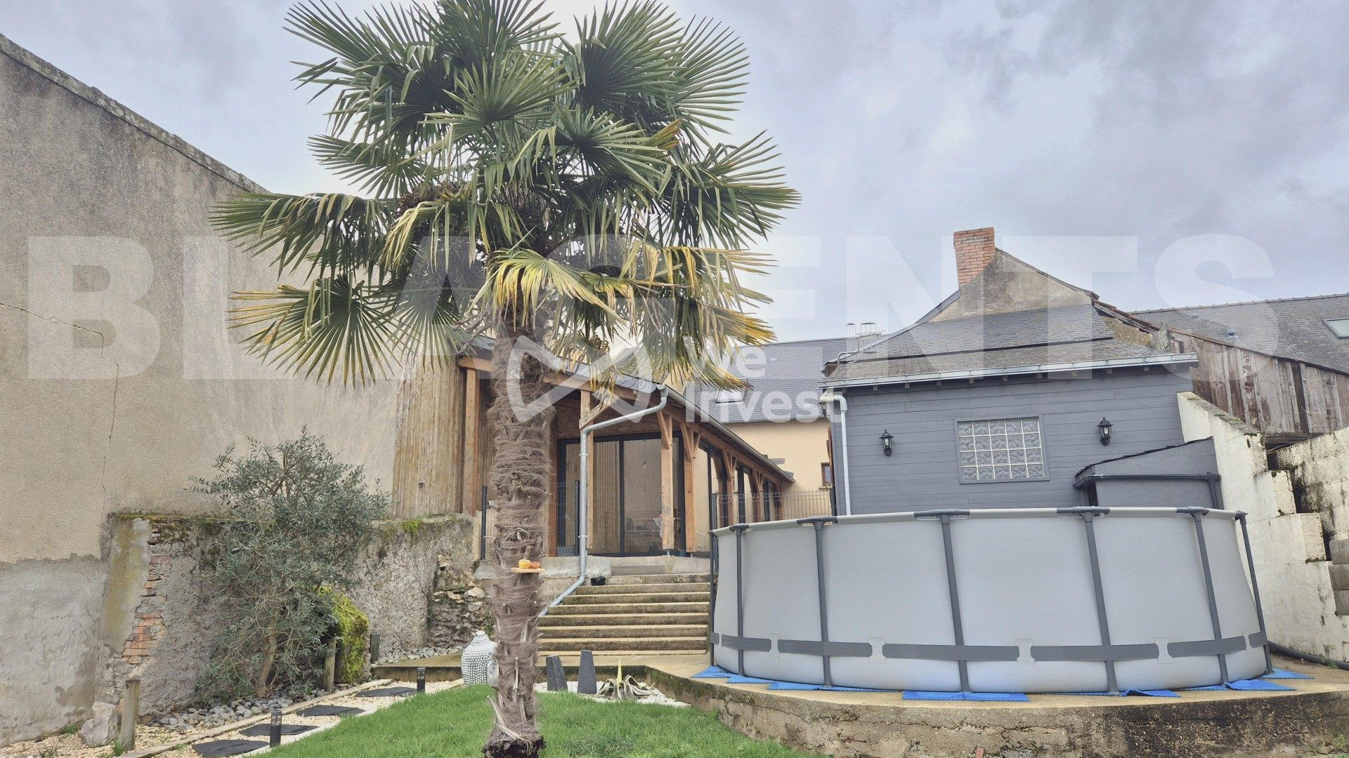 À l'extérieur, la maison profite d'un cadre agréable, protégé de la route par un mur.