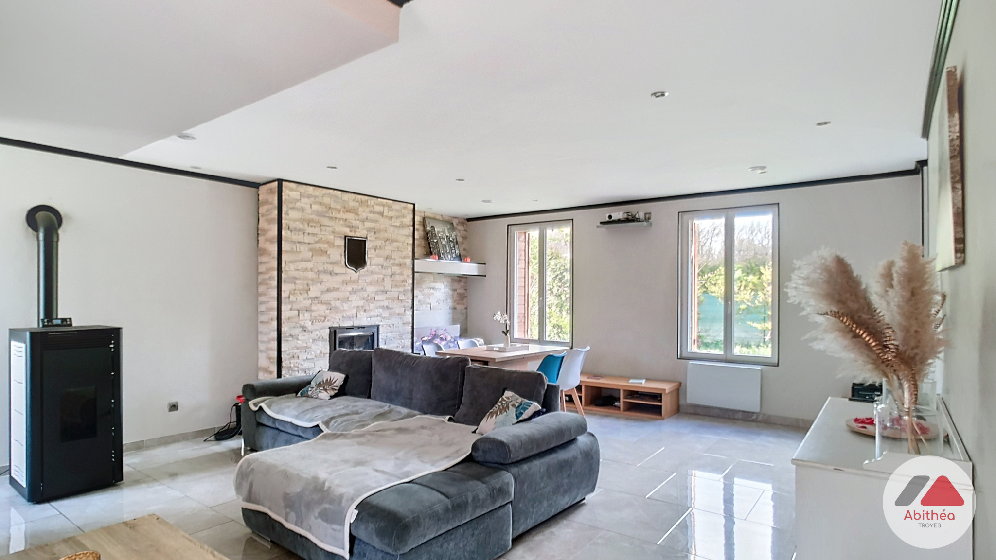Grégory MICHEL vous propose cette superbe maison des années 70 entièrement rénovée, offrant 160 m2 habitables sur sous-sol total, et située en plein coeur du Pays d'Othe, à Aix-en-Othe. Idéale pour une famille, elle séduit par ses volumes généreux, ses prestations modernes et son cadre paisible avec vue imprenable sur les collines boisées et les champs. Dès l'entrée, vous serez accueilli par un dégagement avec placards menant à un salon/séjour traversant, baigné de lumière grâce à ses portes-fenêtres, et agrémenté d'un insert à bois, parfait pour des soirées chaleureuses. La cuisine, entièrement aménagée et équipée, offre un espace fonctionnel et convivial. L'espace nuit du rez-de-chaussée comprend deux chambres et une salle de bain moderne avec baignoire balnéo, idéale pour des instants de détente. À l'étage, un palier d'environ 10 m2 peut être aménagé en bureau ou autre destination selon vos envies. Vous y trouverez trois chambres, dont deux avec placards intégrés et une pièce attenante pouvant être transformée en dressing supplémentaire ou fusionnée avec les chambres pour agrandir l'espace. Une pièce annexe est également disponible sur ce niveau. Un espace relaxation et détente est en cours de finalisation avec un combiné douche/hammam, qui sera finalisé lors de la vente. Un WC complète cet étage. À l'extérieur, profitez d'un terrain de 1 675 m2, sans vis-à-vis et au calme, où une piscine creusée chauffée par pompe à chaleur et une terrasse surélevée exposée plein sud vous offriront des moments de détente exceptionnels. Cette maison a bénéficié de nombreux travaux de modernisation et d'amélioration énergétique : installation d'une pompe à chaleur, d'un chauffe-eau thermodynamique, d'une VMC double flux, d'un ballon d'eau chaude solaire, ainsi que l'isolation extérieure, des combles et du sous-sol, garantissant un excellent confort thermique et une consommation maîtrisée. Idéalement située, elle permet de profiter de la proximité des commodités et des écoles, tout en offrant un cadre de vie paisible et ressourçant. Une maison clé en main, offrant tout le confort moderne dans un écrin de verdure, à visiter sans tarder!