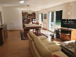 A l'OUEST de VANNES, à proximité du BOURG de PLOUGOUMELEN, notre agence a le plaisir de vous proposer cette spacieuse maison familiale offrant environ 174 m² habitables, édifiée sur un magnifique parc arboré de 5 800 m². Dès l'entrée, vous découvrirez au rez-de-chaussée une distribution fonctionnelle comprenant une entrée accueillante, une vaste et lumineuse pièce de vie d'environ 47 m², une cuisine indépendante récente aménagée et équipée en totalité, ainsi qu'une suite parentale composée d'une chambre, d'un dressing et d'une salle de bains. Un garage attenant, accessible directement depuis la maison, complète ce niveau. À l'étage, un palier dessert quatre belles chambres, un espace bureau et une salle d'eau, offrant un confort idéal pour une famille. À l'extérieur, un portail électrique ouvre sur la propriété et son parc paysager, véritable havre de paix. Vous profiterez également d'un espace de stationnement, d'une terrasse bien exposée donnant sur la piscine, ainsi que d'une dépendance pouvant accueillir deux véhicules. Vous serez séduits par les volumes généreux, la fonctionnalité de cette maison et la quiétude exceptionnelle de son environnement naturel. Réf : VA2601007