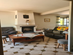 Salon/séjour lumineux avec cheminée et insert à bois, parfait pour les moments en famille,