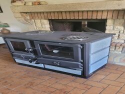 rez de chaussée une belle entrée de 20 m² avec départ d'escalier pour l'étage et un poêle à bois, une cuisine aménagée et équipée de 16 m², une pièce de vie de 29 m² avec sa cheminée et sa cuisinière bois, un salon de 20 m² et cheminée avec un insert bois, une sdb ,wc .