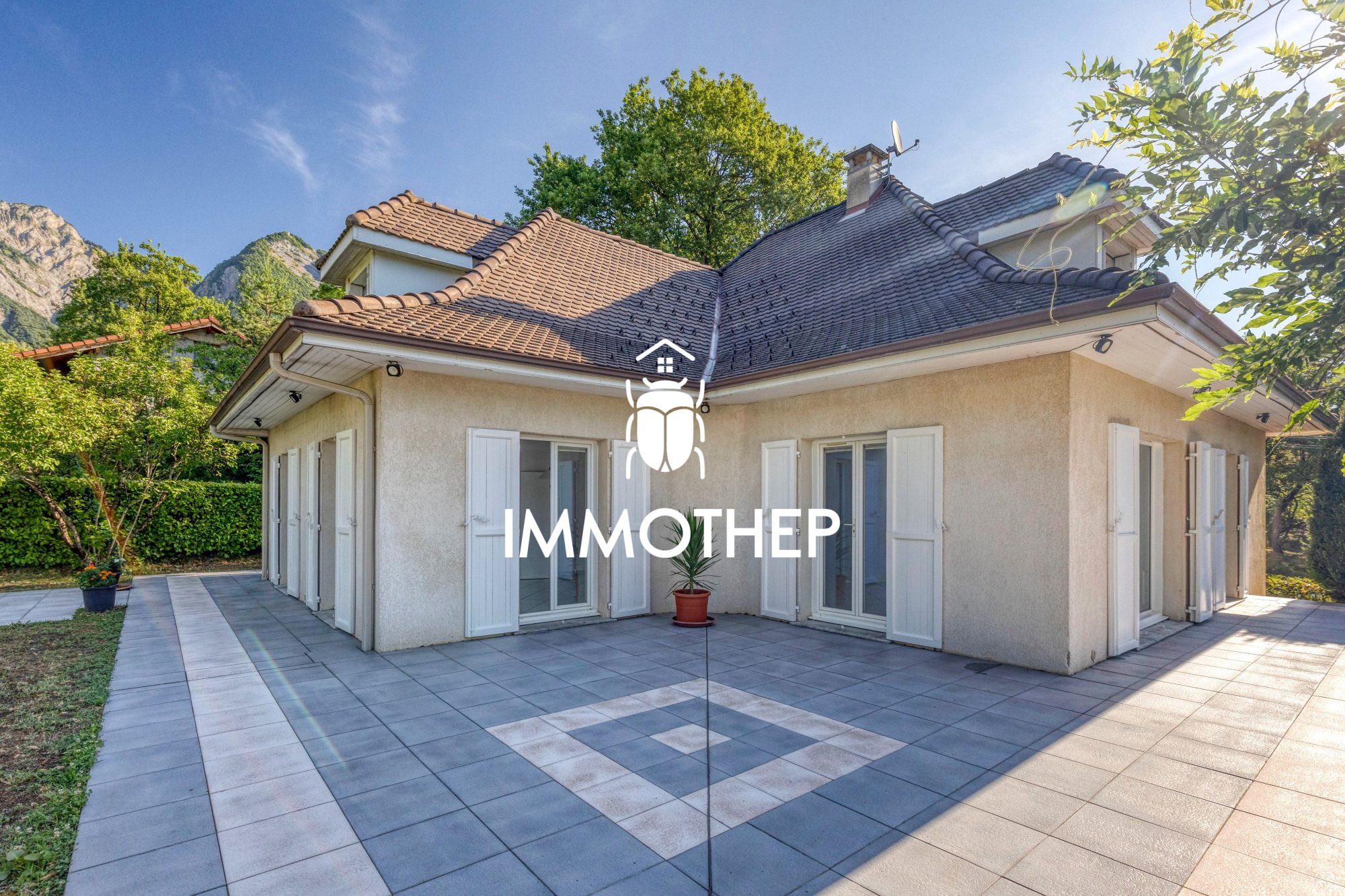 Saint Ismier, Coeur Village, a 3 minutes à pieds de la place de l'Eglise. En retrait donc au calme absolue et proche des commodités, belle maison familiale de presque 230 m2 habitables sur 3 niveaux. Une pièce de vie avec cuisine équipée de 57 m2, salon TV, 4 Chambres et en plus un studio indépendant avec kitchenette. Nombreux rangements, dressings et grands dégagements. Garage de 45 m2, buanderie. Chauffage individuel Gaz et climatisation. Terrain de 882 m2 avec piscine et terrasse exposition plein SUD.