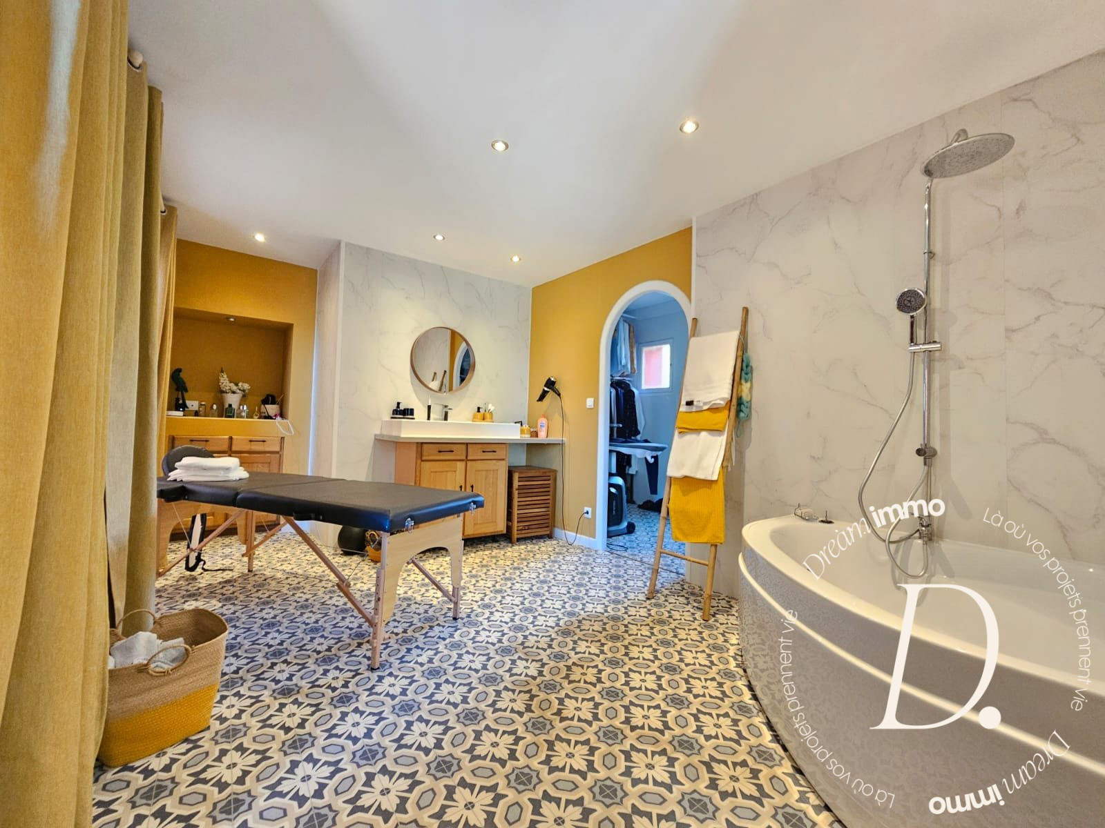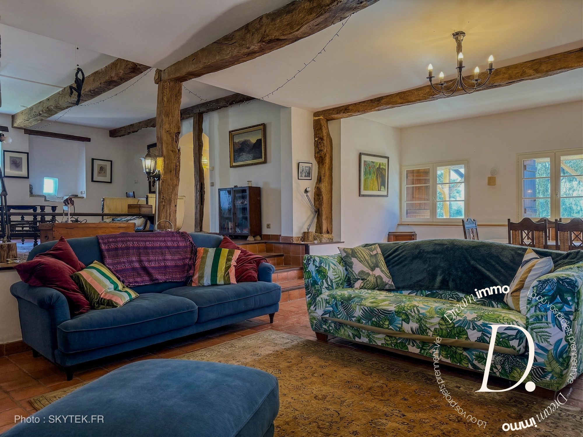 Vous bénéficierez également d'un accès à une pièce restant à terminer, ainsi qu'à la cuisine d'été, facilement réhabilitable en une grande salle à manger avec plafond cathédrale, offrant un volume exceptionnel.