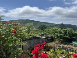 Du salon, un accès au balcon avec vue sur la montagne noire.