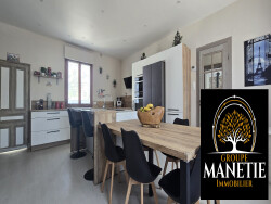 D'une surface généreuse, elle se compose au rez-de-chaussée d'une belle pièce de vie lumineuse avec salon et salle à manger, une cuisine dinatoire contemporaine entièrement équipée, salle d'eau, wc. L'ensemble offre un espace convivial, idéal pour les moments en famille ou entre amis.