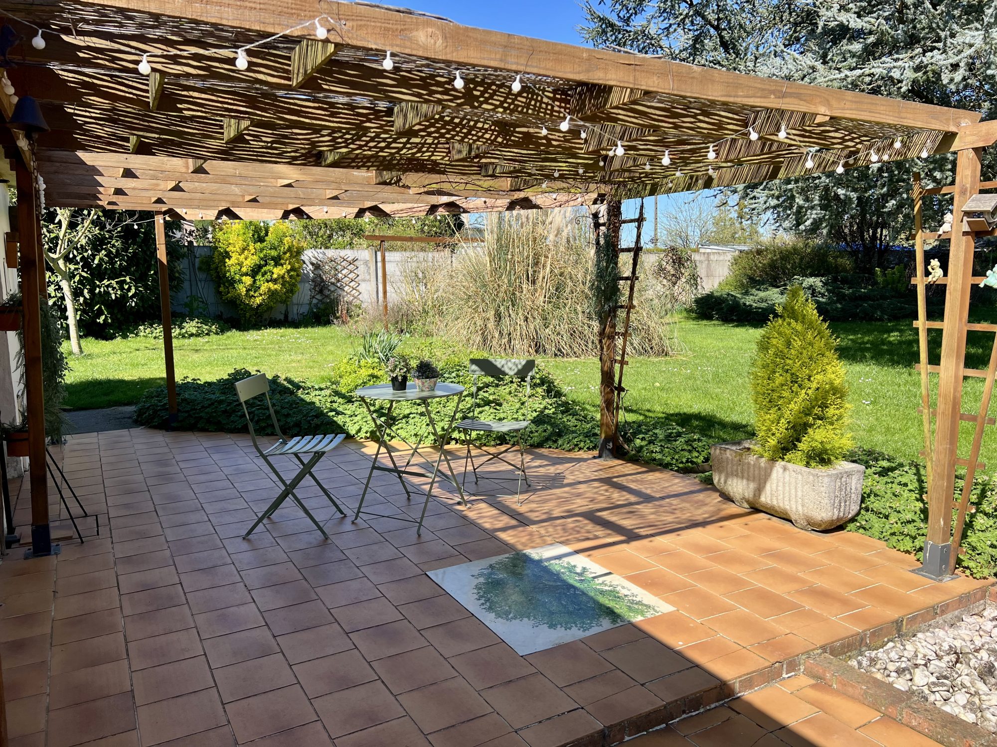 Cave, terrasse, jardin clos, garage.