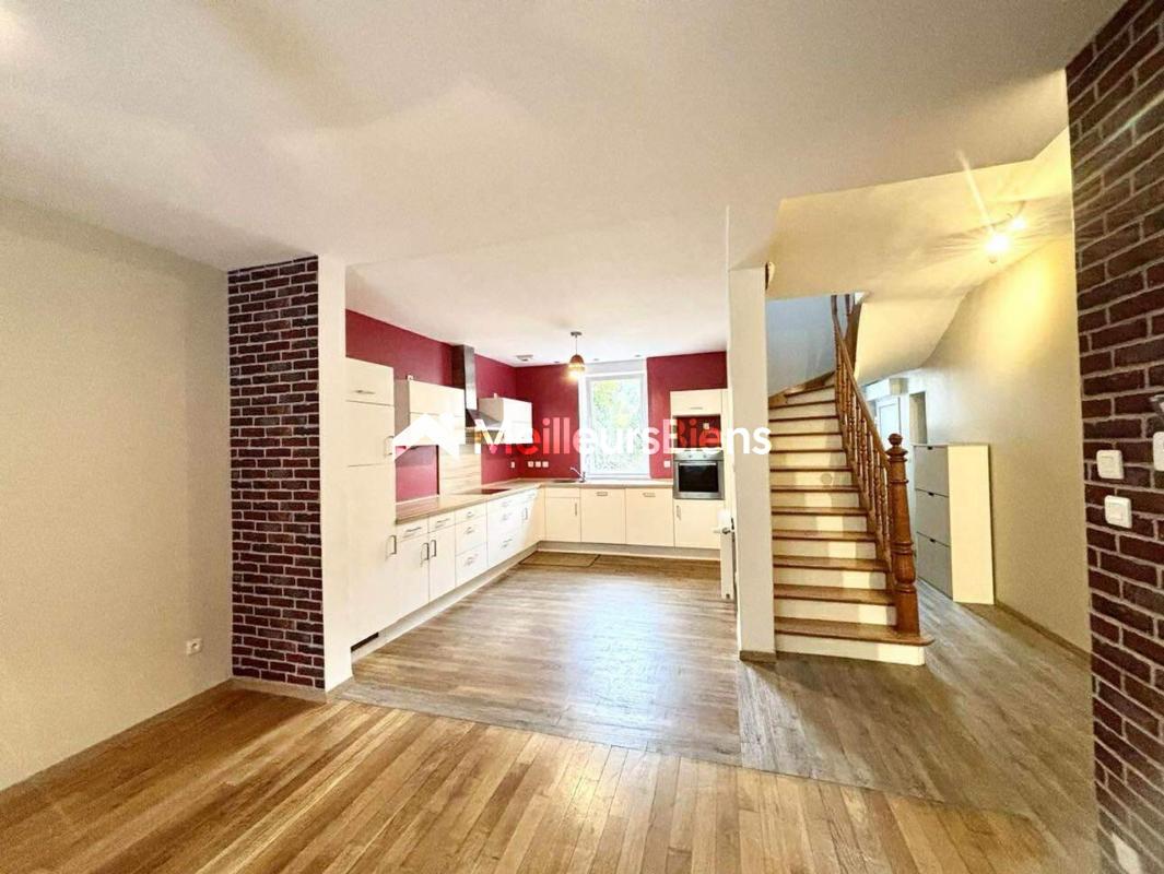 - Au Rez-de-Chaussée, sur une surface plane, nous disposons d'une belle pièce à vivre, très lumineuse , située dans le prolongement de la cuisine équipée.