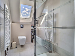 La maison - 121 m² habitables sans vis-à-vis - Grand séjour lumineux de caractère, ouvert sur la terrasse et la piscine - Bibliothèque sur mesure et coin feu de bois cosy - Parquet, aménagements d'architecte, verrière et grandes baies vitrées - Cuisine toute équipée haut de gamme - 4 chambres et un bureau sur deux étages - 1 salle de bain avec baignoire et douche - 1 salle d'eau - 2 WC