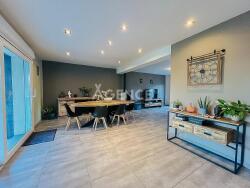 Située dans un quartier calme, cette maison de type semi plain-pied vous offre confort et modernité. On retrouve au rez-de-chaussée un hall d'entrée avec toilettes indépendant, une spacieuse et lumineuse pièce de vie avec poêle à pellet, ouvert sur une cuisine aménagée et équipée ainsi qu'une buanderie avec accès garage.