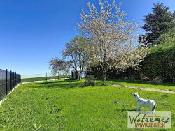 Maison individuelle de plain pied, offrant entrée, salon, séjour ouvert sur cuisine équipée, 3 chambres, salle d'eau, lingerie, wc. Terrasse, cour macadam. Chaufferie jardin avec et sur 1248 m2 clos, avec abri. Belle exposition.