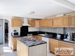Maison individuelle de plain pied, offrant entrée, salon, séjour ouvert sur cuisine équipée, 3 chambres, salle d'eau, lingerie, wc. Terrasse, cour macadam. Chaufferie jardin avec et sur 1248 m2 clos, avec abri. Belle exposition.
