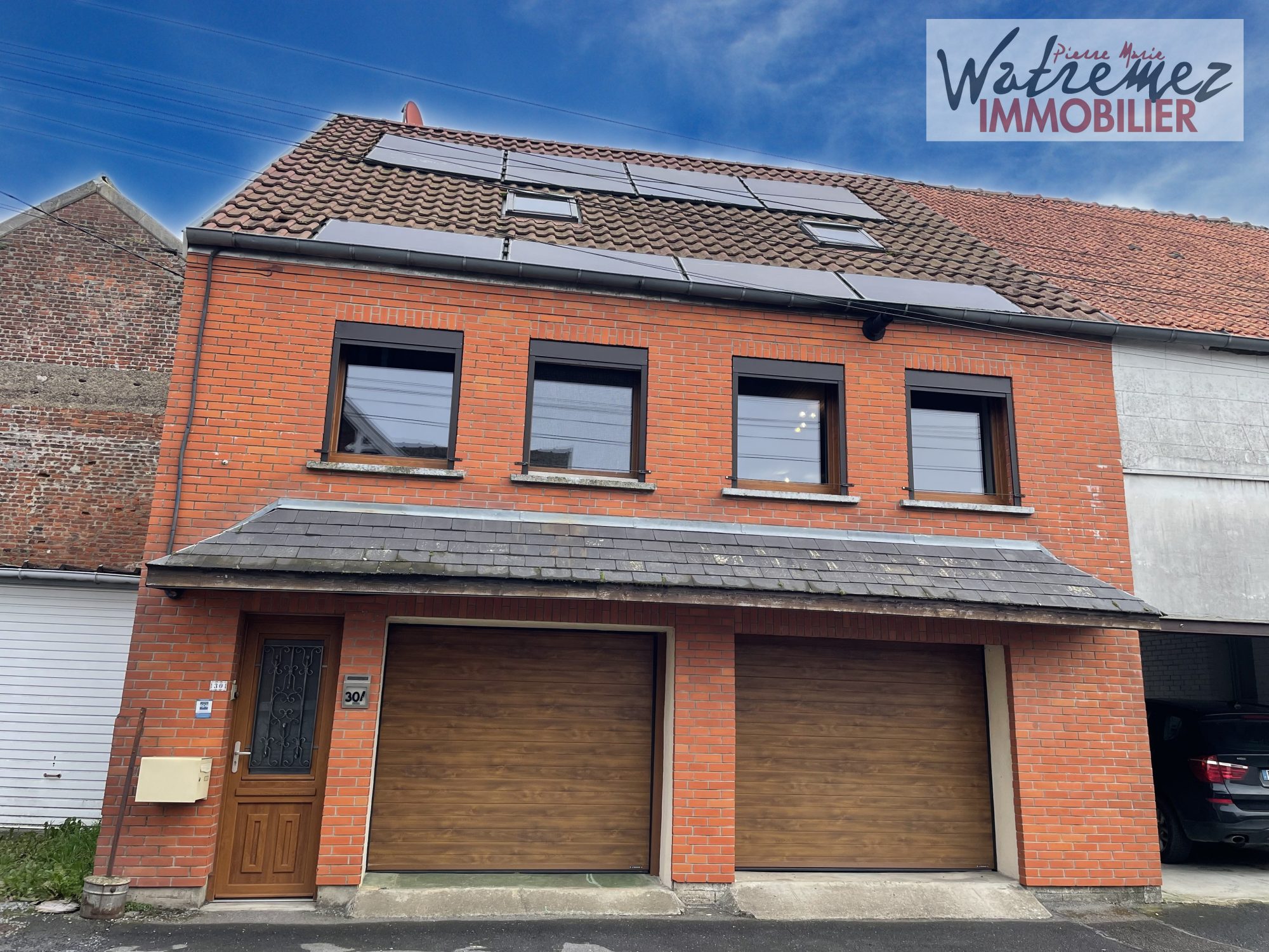 Maison individuelle à FLAUMONT WAUDRECHIES comprenant : Entrée, salle à manger, salon, cuisine équipée, salle d'eau, WC, chaufferie. A l'étage : deux chambres et un bureau. Jardin avec terrasse, garage. Chaudière pellet et poêle à bois, Menuiseries en PVC DV de 2016.