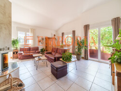 En liseré de forêt cette superbe Maison à quatre demi-Niveaux, confort, espaces, prestations de qualité et coup de coeur avec vue à couper le souffle ! Découvrez cette magnifique maison qui déploie ses volumes sur quatre demi-niveaux, alliant confort, fonctionnalité et prestations modernes et agencement intelligent. Au niveau du parking : une entrée de service avec vestibule, menant directement au garage et à l'espace de vie. Sur ce même niveau : trois chambres confortables, idéales pour les enfants, les invités ou un bureau. Au demi-niveau supérieur : une salle de bain, un cabinet de toilette, une salle de sport équipée avec sauna, un grand cellier avec cagibi, et une buanderie pratique. À l'étage principal : l'entrée principale accueille une vaste pièce de vie lumineuse avec cheminée, parfaite pour les soirées en famille, ainsi qu'une cuisine entièrement équipée, ouverte sur une terrasse agrémentée d'un store électrique. Au dernier niveau : deux chambres supplémentaires, chacune avec son vestiaire et son accès à une terrasse privative (également équipée d'un store électrique), un bureau, une salle d'eau et un second cabinet de toilette. -Extérieurs aménagés et soignés : le jardin clos et arboré propose plusieurs terrasses et espaces de détente, parfaits pour profiter des beaux jours, avec un accès direct à la forêt depuis le jardin.À l'avant, plusieurs places de parking sont à disposition pour accueillir famille et visiteurs. -Informations techniques et équipements : Plancher chauffant alimenté par pompe à chaleur, complété par un ballon électrique Aspiration centralisée 2 Installations panneaux solaires (pour revente + autoconsommation) Toiture récemment nettoyée Volets électriques et huisseries en PVC double vitrage pour un confort thermique optimal.