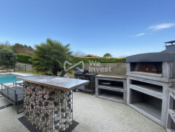L'extérieur est un véritable atout : un jardin clos avec arbustes, haies et massifs, préserve totalement l'intimité. Une piscine de 32 m² (8x4 m) entourée d'une plage en béton résine décoratif, à la fois esthétique et facile d'entretien. Un espace cuisine d'été, équipé d'un four à pizza et d'un coin détente, invite à la convivialité.