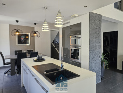 Saint-Genès-Champanelle // Vos Agents vous proposent... une superbe maison sur les hauteurs de St-Genès avec une vue à couper le souffle, dans un quartier résidentiel calme et ensoleillé, à seulement 20 minutes de Clermont-Ferrand. Bâtie sur une parcelle piscinable de presque 1400m2, cette maison conçue sur 3 demi-niveaux se compose comme ceci : En rez-de-jardin, une lumineuse pièce de vie de 57m2 bénéficiant d'une très agréable hauteur sous plafond avec espace salon et cuisine entièrement équipée. Un dressing et un WC complètent ce niveau, de même qu'un accès direct à un double-garage de plus de 50m2 et à la buanderie. Au premier, vous trouverez trois chambres de plus de 13m2, toutes avec placard, une grande salle d'eau avec douche et baignoire ainsi qu'un WC. Au deuxième, une mezzanine de 14m2, véritable espace bureau avec son propre balcon, accompagne une suite parentale de plus de 20m2 avec son espace douche et un dressing attenant. À l'extérieur, vous pourrez profiter de deux belles terrasses dont une avec pergola bio-climatique et d'une annexe de 17.5m2 avec stockage en mezzanine pouvant être aménagée. Un bien rare, clé en main et d'une qualité évidente, à ne pas laisser passer ! Chauffage individuel gaz de ville (chaudière Chaffoteaux haute condensation) sol et radiateurs. Huisseries double-vitrage PVC OB, volets roulants électriques, fibre. Aucun travaux à prévoir. Les informations sur les risques auxquels ce bien est exposé sont disponibles sur le site Géorisques : www.georisques.gouv.fr. Estimation de votre bien gratuitement en 48 heures, n'hésitez pas à nous contacter, nous avons certainement le client qu'il vous faut ! Prix : 599 000 EUR HAI. Vos Agents Jean & Olivier : 06.24.61.99.43 / 06.40.22.30.93 Agents commerciaux immatriculés au RSAC de CLERMONT-FERRAND sous les numéros 917 497 257 et 913 779 013. www.vosagents.fr