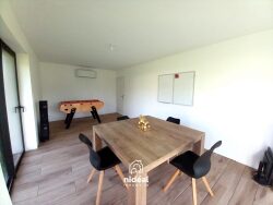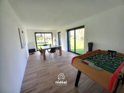 À découvrir sans tarder ! Bien rare sur le secteur, cette maison est idéale pour une grande famille ou une famille recomposée grâce à ses 8 chambres. Maison individuelle de 291 m², au style atypique (par sa construction), construite en 2024 et bénéficiant des garanties décennales. Au rez-de-chaussée, vous trouverez une vaste entrée avec WC indépendant, un spacieux salon-séjour d'environ 70 m² avec cuisine aménagée et équipée, une salle de jeux (pouvant être aménagée en chambre supplémentaire), ainsi qu'un cellier/buanderie. À l'étage, un palier et plusieurs dégagements desservent 8 grandes chambres (dont une avec balcon), une salle de bains, une salle d'eau et un WC indépendant. La maison dispose également d'un garage compartimenté d'environ 30 m², idéal pour le stockage. Prestations de qualité : double vitrage aluminium, volets roulants électriques et chauffage par pompe à chaleur, assurant un confort optimal en toutes saisons.