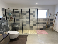 Côté confort : chauffage électrique, avec chauffage au sol au rez-de-chaussée et du triple vitrage sur les menuiseries.