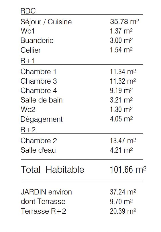 Elle dispose d'un séjour donnant sur une grande terrasse, d'une cuisine indépendante, 2 chambres de plain-pied, salle d'eau, 3ème chambre à l'étage avec salle de bains.