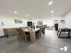- RDC : entrée donnant sur séjour 33m² ouvert sur cuisine équipé et dinatoire 24m², salle de bains et lingerie.