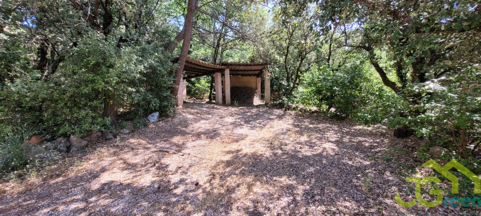La maison s'ouvre sur l'extérieur avec une piscine, un vaste terrain arboré de 1 989 m² sans aucun vis-à-vis, un carport et plusieurs espaces de stationnement.