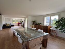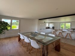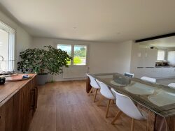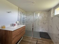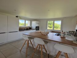 L'entrée, dotée de rangements, s'ouvre sur un lumineux salon et une salle à manger. La cuisine, spacieuse et moderne, est entièrement aménagée et équipée. Vous apprécierez la suite parentale, chaleureuse grâce à son parquet en châtaignier, qui dispose d'une salle de douche et d'un toilette indépendant.