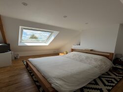 Un élégant escalier en marbre vous conduit à l'étage, où se trouvent un grand hall pouvant servir de bureau ou de bibliothèque, une salle de bain, et deux très grandes chambres.