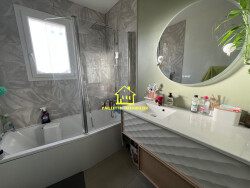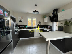 À 4 minutes de Saint-Romain-de-Colbosc, cette maison individuelle de 130m² avec vie de plain pied offre une entrée sur un vaste séjour lumineux, une cuisine aménagée et équipée, une chambre, un bureau, une salle de bains et un wc indépendant, le tout en rez-de-chaussée. À l'étage, vous trouverez une pièce palière desservant trois chambres, dont une avec dressing et un wc avec lave-mains et rangement. Garage accolé pour stockage et buanderie. Jardin sur lequel terrasse bien exposée avec vue dégagée sur parcelle agricole non constructible, et abri.