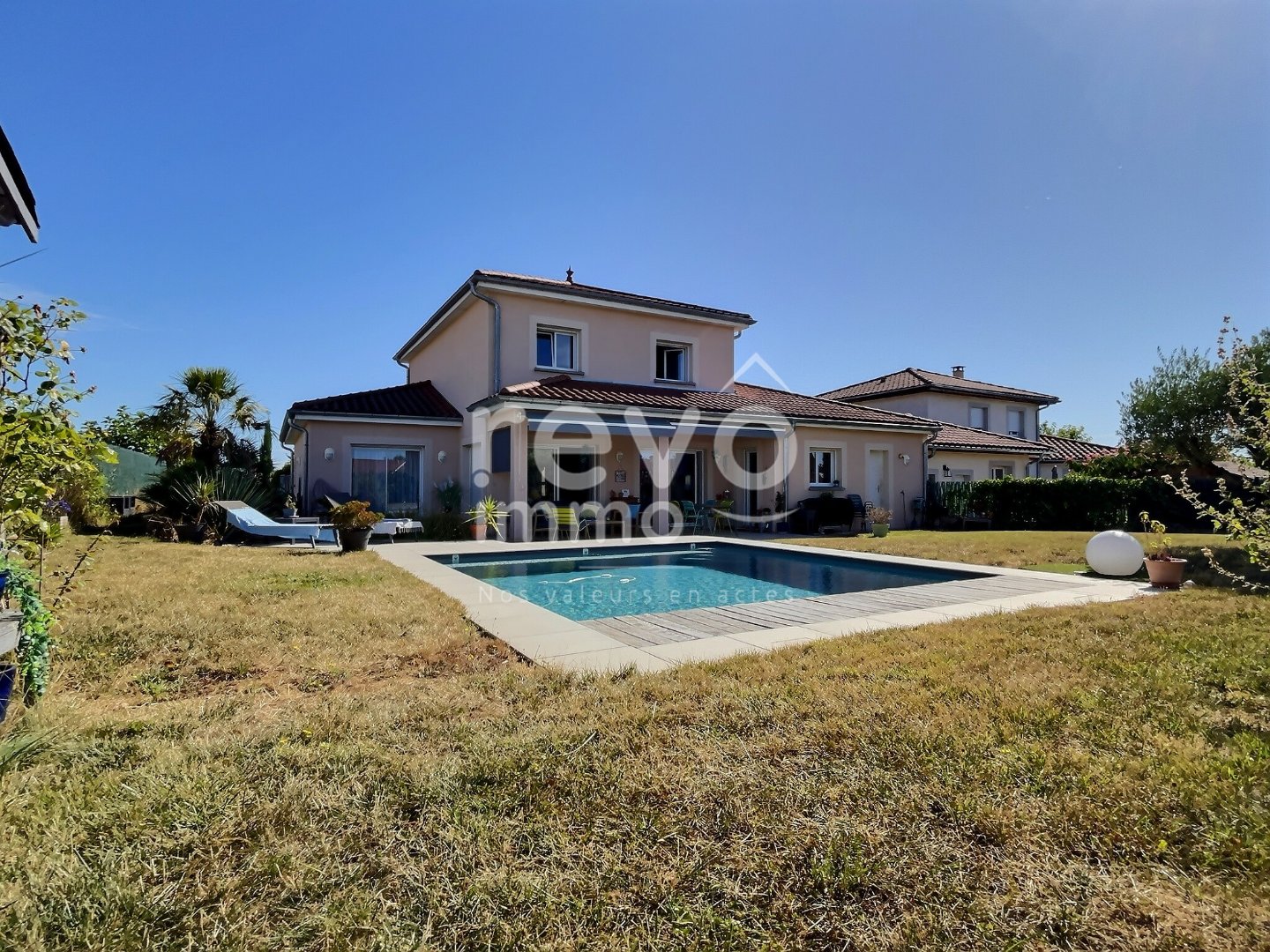 Votre agence Revô Immo de Mionnay a le plaisir de vous présenter cette maison de 1977 intégralement rénovée, de type 4 et d'une surface de 178m2 sur son terrain de 906m2. Elle dispose d'une piscine chauffée et son pool house. Elle se compose: - au rez-de-chaussée: une pièce de vie lumineuse de 58m2 avec cuisine US équipée, un espace parentale (une chambre, une salle d'eau avec douche à l'italienne et un dressing avec sauna), et un WC. - à l'étage: 2 grandes chambres (29m2 chacune), un coin salon/bureau, une salle de bains avec WC. Les plus: - portail électrique en aluminium - menuiseries en aluminium et PVC avec stores électriques: - chauffage électrique + climatisation réversible (salon + les 3 chambres) - 18 panneaux solaires - Fibre optique - isolation phonique entre le RDC et l'étage - hors lotissement. Mionnay, village "où il fait bon vivre autour de Lyon" selon le FIGARO, bénéficie de la proximité avec La Part-Dieu en train (20min) et d'une entrée d'autoroute à 3min. Vous pourrez scolariser vos enfants jusqu'à la primaire. Un ramassage scolaire gratuit leur permettra de rejoindre le collège dans le village voisin et le Lycée à Trévoux (possibilité pour Neuville et Rillieux également). Enfin, il y a une boulangerie, une épicerie-tabac, des salons de coiffure, une pharmacie, des médecins généralistes, des osthéo, une crêche etc... SAS REVO IMMO - CHAGNARD Valérian EI - O603 896 052 - Plus d'informations sur www.revo.immo (réf. 4901051062). Agent commercial RSAC BOURG-EN-BRESSE 880 152 863 - Prix TTC et Honoraires à charge vendeur TTC - Les informations sur les risques auxquels ce bien est exposé sont disponibles sur le site Géorisques : https://www.georisques.gouv.fr/.