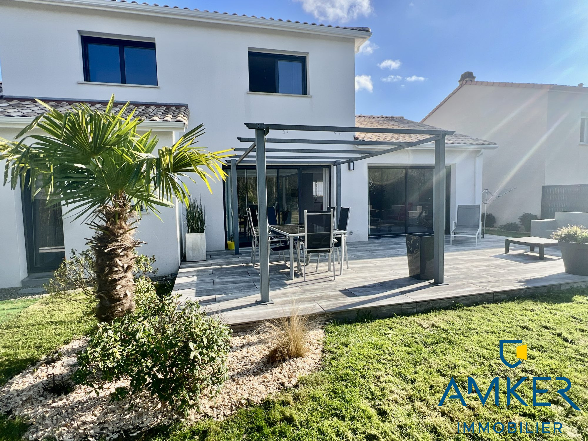 Coté extérieur, vous pourrez aisément stationner vos véhicules sur l'avant de la parcelle et coté jardin, vous bénéficierez d'une grande terrasse de 25m2 avec Spa. Un joli jardin intimiste sans vis à vis mais aussi afin de profiter des belles journée d'été entre amis, un espace bar aménagé.