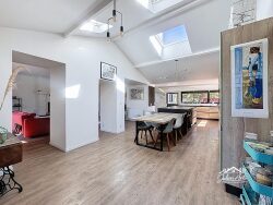 Dés l'entrée, vous serez séduits par le volumes incroyables de la pièce de vie au toit cathédrale de 90m2. Celle ci, traversante et lumineuse vous offre 2 espaces distincts ouvert: une très grande et belle cuisine de 2023 intégrant la salle à manger. Et un confortable salon séjour avec cheminée. Le RDC est complété par un espace parentale à finir d'aménagé pour créer une grande suite avec chambre, dressing et salle d'eau. une chambre supplémentaire et une arrière cuisine fonctionnelle et bien équipée complète ce RDC.