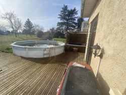Terrain clos d'environ 624 m2 Terrasse en bois Piscine hors sol entourée de la terrasse (à remettre en état) Abri de jardin