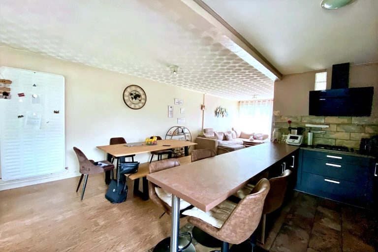 Proximité centre-ville, Véronique ROBERT (06 14 46 72 29) vous propose cette agréable maison individuelle de plain-pied sur sous-sol complet, offrant volumes, fonctionnalité et cadre verdoyant. Dès l'entrée, vous découvrirez un hall accueillant menant vers un bel espace de vie lumineux composé d'un salon et d'une salle à manger ouverts sur une cuisine équipée, créant une atmosphère conviviale et chaleureuse. La partie nuit propose deux chambres, un coin nuit supplémentaire, un bureau idéal pour le télétravail, un dressing, une salle de bains ainsi qu'un WC indépendant. Le sous-sol complet constitue un véritable atout avec double garage, buanderie, chaufferie et quatre pièces supplémentaires, offrant de multiples possibilités : atelier, espace loisirs, stockage ou aménagement personnalisé selon vos besoins. Implantée sur un terrain clos et arboré de plus de 1 200 m2, agrémenté de nombreux arbres fruitiers, cette propriété séduira les amateurs d'espace, de tranquillité et de nature, tout en restant à proximité immédiate des commodités. Un bien rare sur le secteur, idéal pour une famille en quête de confort et d'environnement privilégié. Les informations sur les risques auxquels ce bien est exposé sont disponibles sur le site Géorisques : www.georisques.gouv.fr TIGRE IMMOBILIER MAUBEUGE JEUMONT www.tigre-immobilier.fr - 0327649216 ou 0327582626