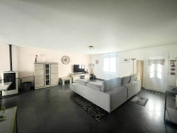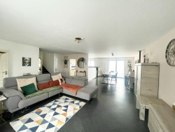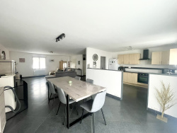 Maison individuelle (2006) de 130m2 comprenant : Au rez de chaussée: cuisine (12m2) ouverte sur séjour salon accès terrasse (50m2), WC indépendant avec lave mains (2.12m2), Au 1 er étage 4 chambres (13m2, 14m2, 14.50m2, 12m2) et une salle d'eau avec douche italienne et WC suspendu (6m2) Au sous sol: 2 garages (côte à côte 65m2) et une buanderie accès extérieur (13m2) Chauffage : radiateur électrique et poêle à pellets Isolation extérieur et laine de verre soufflée (30cm grenier)