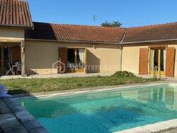 Au rez-de-chaussée, une vaste pièce de vie de 100m2 environ offrant un salon-séjour très lumineux avec une cheminée. Vous apprécierez sa charpente aparente donnant un sacré cachet à cette pièce. Puis dans l'autre aile de la maison 'partie chambres d'hôtes', se trouvent trois suites parentales donnant accès sur la terrasse et la piscine. De plus une des chambres est aménagée pour les personnes handicapées et à mobilité réduite ( PMR).