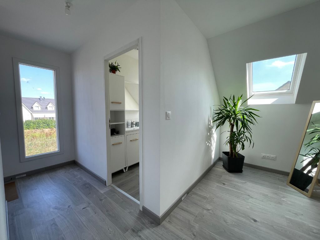 Au rez-de-chaussée, elle se compose d'une entrée, d'une cuisine ouverte sur un lumineux salon-séjour avec accès direct à la terrasse, ainsi qu'une salle d'eau avec WC. À l'étage, un palier dessert trois chambres et une salle de bain avec WC. Un garage complète le bien. Côté confort, la maison est parfaitement isolée (murs, combles, menuiseries) et sera équipée d'une pompe à chaleur avec chauffage au sol, garantissant une excellente performance énergétique et un confort optimal tout au long de l'année. Un bien idéal pour une famille ou un couple souhaitant s'installer dans un environnement calme et résidentiel, tout en restant à proximité des grandes villes et des commodités.